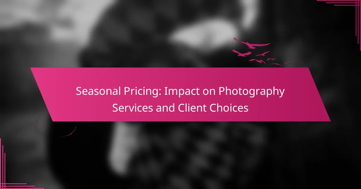 Seasonal pricing significantly impacts client choices in photography services by affecting their booking preferences, budget considerations, and responsiveness to promotional offers. Clients often adjust their decisions based on the perceived value and cost associated with different seasons.